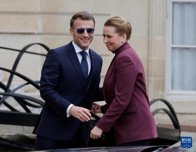 1月28日,法国总统马克龙(左)在巴黎欢迎到访的丹麦首相弗雷泽里克森 新华社发