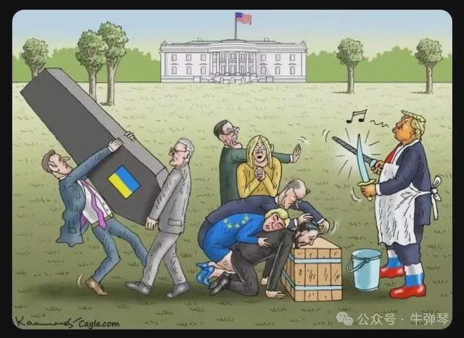 特朗普对泽连斯基磨刀霍霍 漫画图