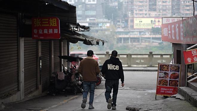 他独自走在人群前方,时而雀跃时而停驻,说上小学时学校重建,在那时就有空调、有音乐课,细数校门口的各种小摊零食,检查和同学曾经跳下数米高的平台才能到的防空洞还在不在。他和母亲住的最后一个租房已经被拆了,此前他们和舅舅一家住的房子也被贴上拆的标签。他想一一把它们刻在记忆里。