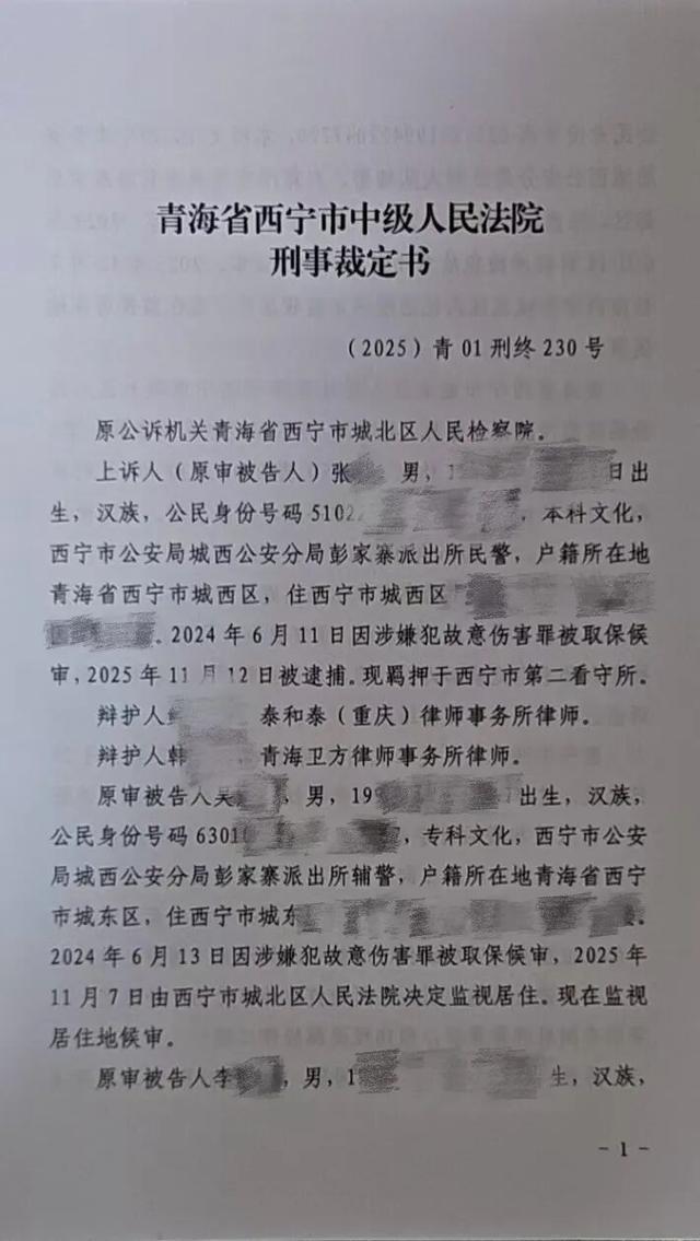 近日,青海省西宁市中级人民法院就孙先生被民警张某及两名涉案辅警殴打一案作出终审裁定,驳回上诉人张某的上诉,维持一审原判。至此,这起曾引发社会广泛关注的民辅警殴打群众案尘埃落定,3名涉案人员的刑罚最终确定。