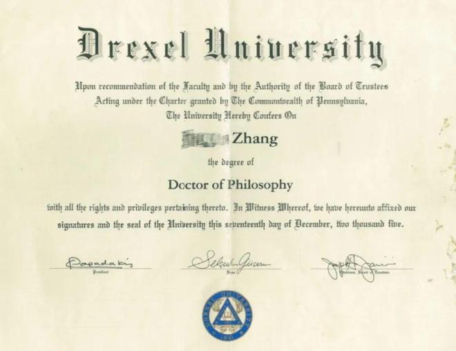 张先生的博士学位证书