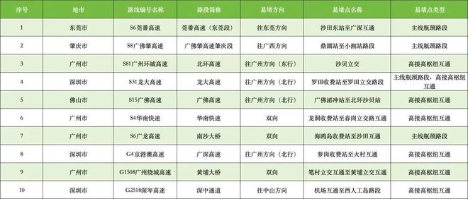 预计2月18日(正月初二)、2月22日至2月23日(正月初六至正月初七)为假期高速公路出行高峰 ,但整体运行仍为畅通状态,部分高速公路在10:00-19:00时段运行压力相对较大,如广深沿江高速公路(西乡南收费站-深岑高速公路)、深汕高速公路(坑梓收费站-龙岗收费站)、深岑高速公路(南光高速公路-机场立交)等。具体如下图所示: