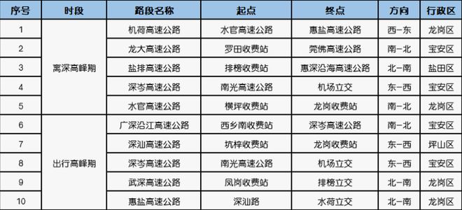 至于深圳情况,据“深圳交通”消息,预计春节前离深车流出行高峰出现在2月14日(除夕前两天) ,部分高速公路在10:30-20:00时段运行压力相对较大。如机荷高速公路(水官高速公路-惠盐高速公路)、龙大高速公路(罗田收费站-莞佛高速公路)、盐排高速公路(排榜收费站 -惠深沿海高速公路)等部分路段。