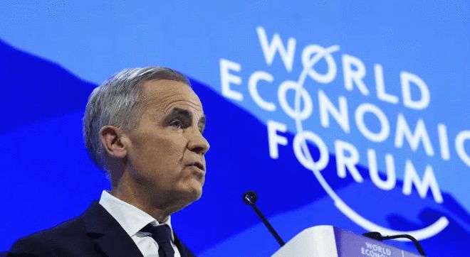 1月20日,在瑞士达沃斯举行的世界经济论坛年会期间,加拿大总理卡尼发表演讲。卡尼表示,加拿大等中等大国必须转变策略,避免沦为强大势力进一步“胁迫”的牺牲品。“如果我们不在谈判桌上,就会出现在菜单上。”