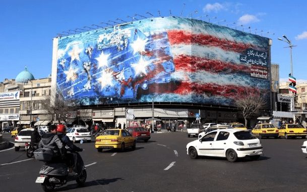 当地时间2026年1月31日,伊朗德黑兰,街头展出巨幅反美广告牌