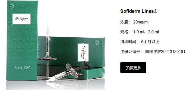 以李娜团队所使用的思伊美玻尿酸为例,红星资本局在该品牌官网以及国家药品监督管理局查询发现,该玻尿酸的注册证编号为“国械注准20213130191”,其适用范围和预期用途为“适用于面部皮肤真皮组织中层至深层注射,以纠正中重度鼻唇沟”。