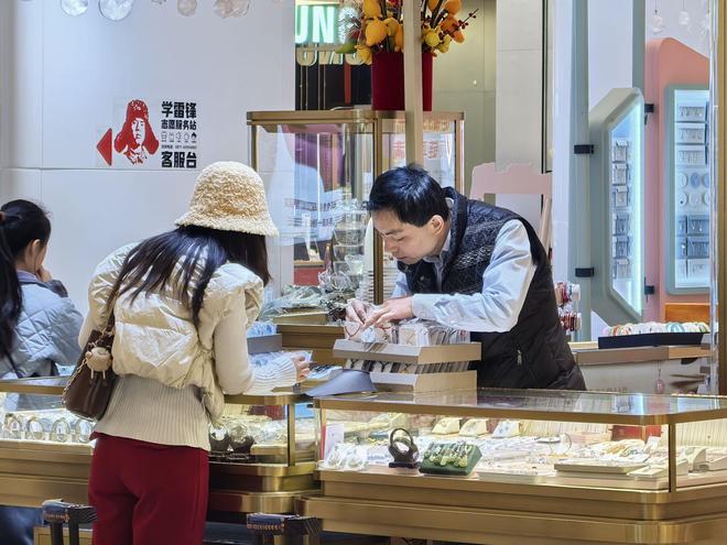 在这家店内,记者遇到了正在挑选婚嫁“三金”的市民刘女士。“本来上周看中了一套,想等等春节活动,结果金价先跌后涨,算下来比最低时多花了近2000元。”刘女士苦笑道,“婆婆说不能再等了,好不容易降了一些,今天必须买。”