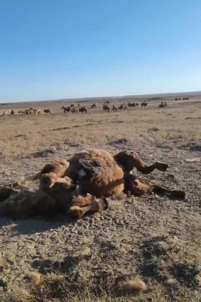 2月2日上午,上述牧民石女士告诉极目新闻记者,她家在包头市达茂联合旗查干哈达苏木,每亩10元租的是腾格淖尔嘎查的草场,目前散养了80多只骆驼。她说,今天又发现有一只骆驼被咬死了,是一只4岁900多斤的大骆驼。