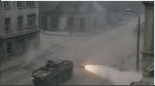 在一段极具张力的慢镜头之后,男子挣扎起身,继续被四名警察追逐。