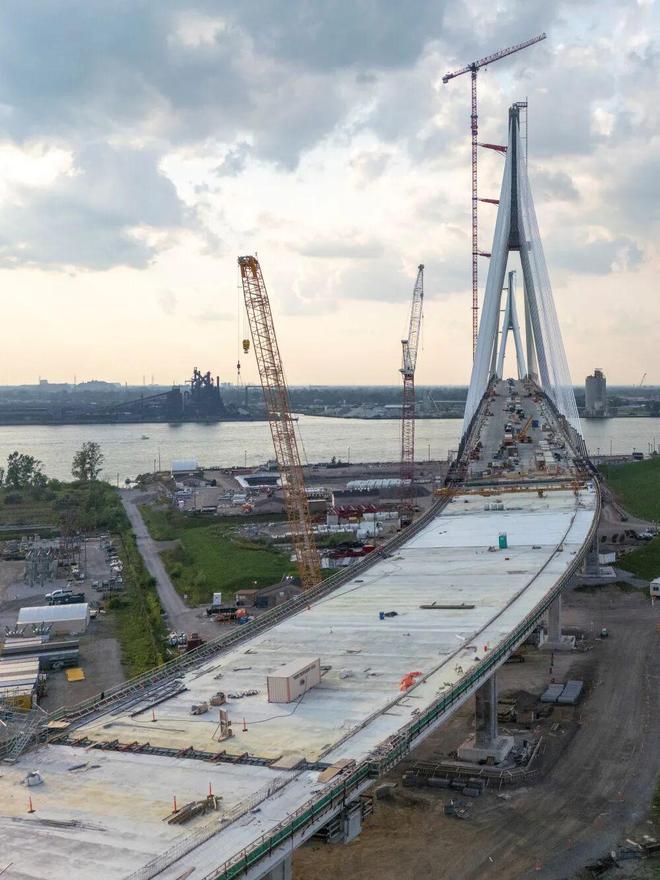 报道称,连接美国密歇根州底特律与加拿大安大略省温莎的全新“戈迪·豪跨国大桥”计划于2026年年初通车。这座大桥建设资金完全由加拿大承担。在多年等待美国出资未果后,加拿大决定独自负担全部费用。