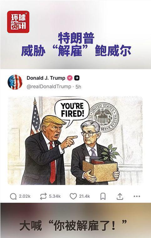 美国媒体称,特朗社交媒体账号上的这张漫画表明,他针对美联储主席的公开施压再次大幅升级,凸显出白宫与美联储之间的紧张关系达到前所未有的程度。