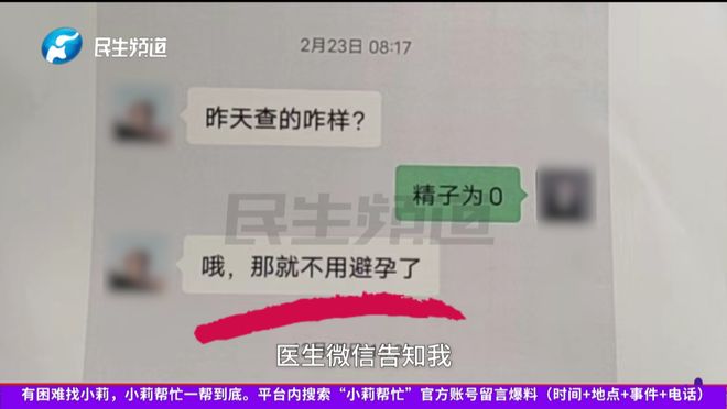 马先生表示,妻子已经生了三个孩子了,并且都是剖腹产。出于心疼妻子,便在2025年1月23日在郑州市第三人民医院做了男性结扎手术,做完以后就按照医生的要求一个月内不同房。之后马先生去该医院复查精子,检查结果显示精子密度为0。“医生微信告诉我们无需避孕了……”