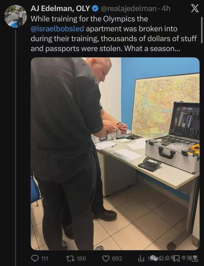 我看到,以色列代表团7日已经报案了,说他们运动员在外面训练时,他们房间里的大量现金,以及很多人的护照,都被小偷一锅端了……